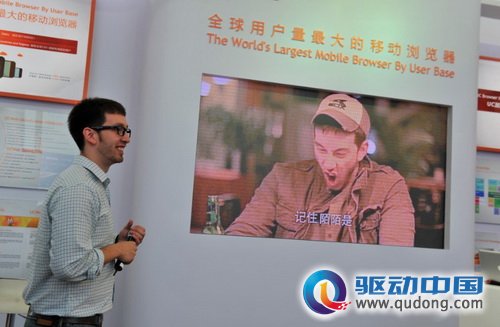 在该视频中,他模拟了 12 个来自不同国家或地区的人的对话,一人分饰 12 角,演得惟妙惟肖。 他在展台现场一会儿耍宝,一会儿介绍 UC 浏览器产品,笑称自己今天与 UC 的关系像是车展上的车模和靓车,而且 自已 也一直是 UC 浏览器的忠实粉丝。