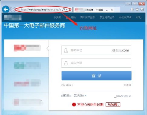 当他打开附件看到“邮箱版本过低需要验证”的提醒,选择“点击验证”之后,页面跳转至平时使用的邮箱登陆页面,输入帐号密码验证之后,页面突然再次跳转到该邮箱登录页面。