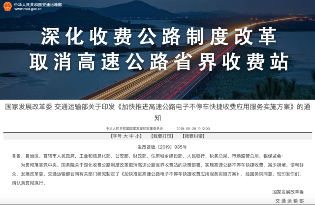 2019年两会,总理在《政府工作报告》中提出要在两年内基本取消全国高速公路省界收费站,实现不停车快捷收费,从而减少拥堵、便利群众。
