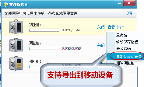 创新功能解读2:支持导入U盘,文件保险柜随身带 很多人喜欢把重要信息放入移动存储设备中随身携带,而移动存储设备恰恰是最容易遗失的,QQ电脑管家的文件保险柜可以导出到移动设备,相当于在U盘中建了个保险柜,即使U盘丢了,也不担心重要信息泄露了。(图2) ![]()