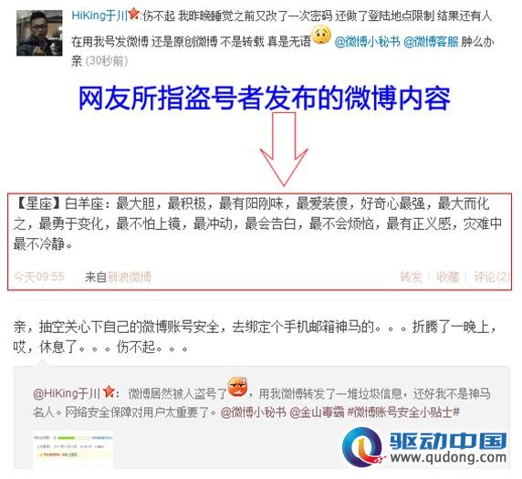 昨日开始,有不少网友反馈微博帐号被盗,有人冒用自己的微博帐号发送消息。金山毒霸安全专家认为,这种情况发生的根源是很多网友存在一个密码通行多个网站的坏习惯。为避免微博帐号被盗,应尽快修改密码。