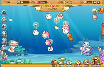 作为恺英网络所偏好的海洋类题材游戏,”小鱼吃吃吃”有很多创新之处,用户可以控制自己的小鱼去挑战神秘的大海,随着关卡解锁,等级升高,每个海域都会出现新鲜的玩法。用户可以拥有属于自己的家园,养各色萌鱼,还能帮好友喂鱼,极受年轻群体的喜爱(图1)。另外,游戏还设置了丰富的任务系统,通过完成线性任务,每日任务和家园任务,直观地引导用户更快更好地了解游戏的玩法,道具的使用方法,并给用户一定的额外奖励(图2)。为了刺激用户之间的竞争,游戏除了传统的好友等级排名,每一个关卡也有好友之间完成速度的排名。这一点大大刺激用户之间的竞争意识与游戏的社交性(图3)。对于喜好装扮类的用户,还能通过收集关卡内的精灵鱼兑换心仪的装扮,充分迎合了广大年轻用户喜欢换装的爱好(图4)。