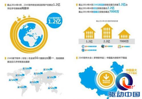 截止2014年4月 2345浏览器安装总量已突破1.2亿台;