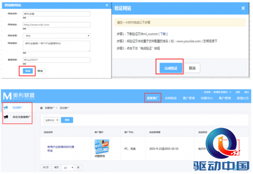 目前美利联盟的推广渠道可以分为“网站、软件和社交媒体”,站长可根据自己的实际情况进行选择,如添加网站,需详细填写网站的基本信息,包括网站名称、网址、描述、备案信息等,然后美利联盟会生成一个验证文件,用户需将该文件上传至你网站的根目录下,然后在美利联盟的操作后台点击进行验证。