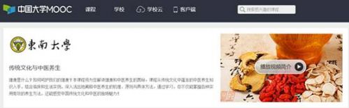 在中国大学MOOC上,《传统文化与中医养生》课程就通过教授各种实用有效的养生方法,既能为用户提供养生保健、防治疾病方面的指导作用,又能在学习中感受到中国传统文化和中医的独特魅力。