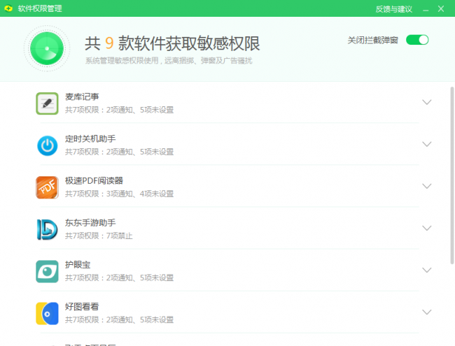 360安全卫士率先推出的“软件权限管理”自上线1.0版本后就广受好评,现在升级版2.0更加“雷厉风行”!不想再被霸道软件们偷取权限的你,是时候行动起来了!赶快下载360安全卫士最新版,体验纯净的电脑“后宫”!