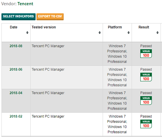 作为由英国著名独立病毒测试中心Virus Bulletin组织的国际性杀软评测,VB100测试一直以标准严苛著称,只有达到诊断率100%、误诊率0%时才会给予通过认证,测试结果只有通过与不通过两种。本次腾讯电脑管家(英文版)在Windows 7和Windows 10两个系统环境中分别通过了相关测试。