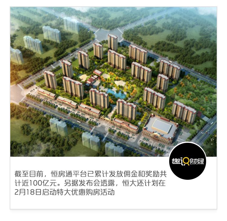数据显示,截至目前,恒房通平台已累计发放佣金和奖励共计近100亿元。另据发布会透露,恒大还计划在2月18日启动特大优惠购房活动,推出史无前例的优惠让利。