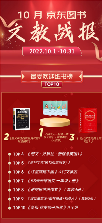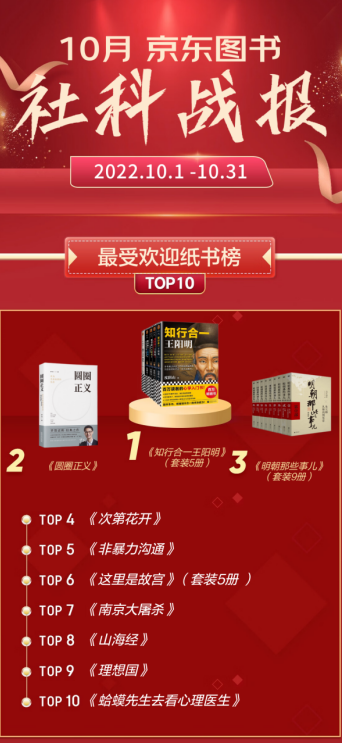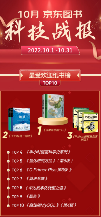 在京东11.11全球热爱季火热进行的时刻,京东图书10月畅销榜出炉。本月榜单的一个重要特点是新面孔特别多,文学、童书、经管、科技、艺术等榜单都有大量新书。如果读者想在京东11.11期间下单购书,又陷入选择性难题之中,那么,照榜买书一定不会辜负你对阅读的热爱。